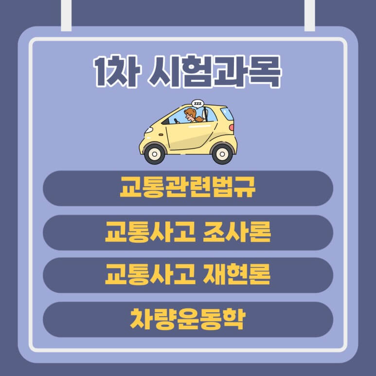 그러므로 1차 과목에서는 상대적으로 점수를 올리기 쉬운 교통관련법규와 교통사고 조사론, 재현론을 60점 이상 받고, 차량운동학 과락 관리를 하는 공부 요령을 써서 통과하면 될 것입니다.