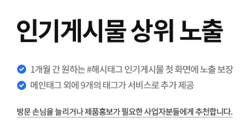 • 상위 노출 보장 및 9개 해시태그 서비스 추가 제공