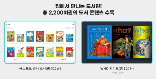 아이의 학습 수준에 따라서 교육을 진행할 수 있기 때문에, 학습능력 향상에 더 큰 도움을 줄 수 있으며 발전하고 심화하는 과정또한 학습할 수 있습니다. 옥스포드 원서 도서도 525권, who 시리즈도 120권 등 집에서 다양한 도서 콘텐츠를 만나 볼 수 있습니다. 초등영어 공부방법에 옥스포드 원서를 이용하면 실력향상 쑥쑥 도움 됩니다.