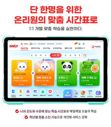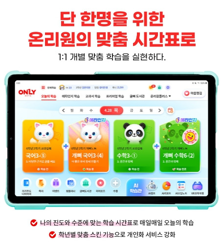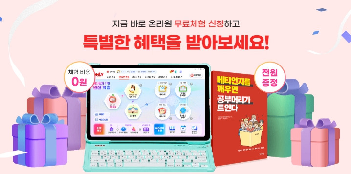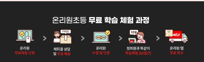온리원 초등 무료체험 10일 경험해보세요. 온리원 초등 전용 학습기도 체험해보세요.