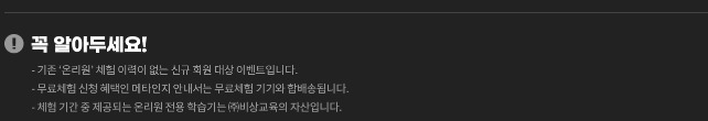 온리원 초등 10일 무료체험해보시고 메타인지 안내서도 받아보세요. 체험 비용은 0원 무료이니 우리 아이에게 맞는 학습인지 꼭 한번 경험해보세요. 3가지 혜택을 드립니다. 온리원 무료체험 10일을 통해서 온리원 초등 전용 학습기(10일)를 체험해보실 수 있으며 초등급수 한자문제집 1권과 메타인지 안내서 1권을 받아보실 수 있습니다. 메타인지 안내서는 한정수량으로 조기소진될 수 있으니 빠르게 무료체험 받아보세요.