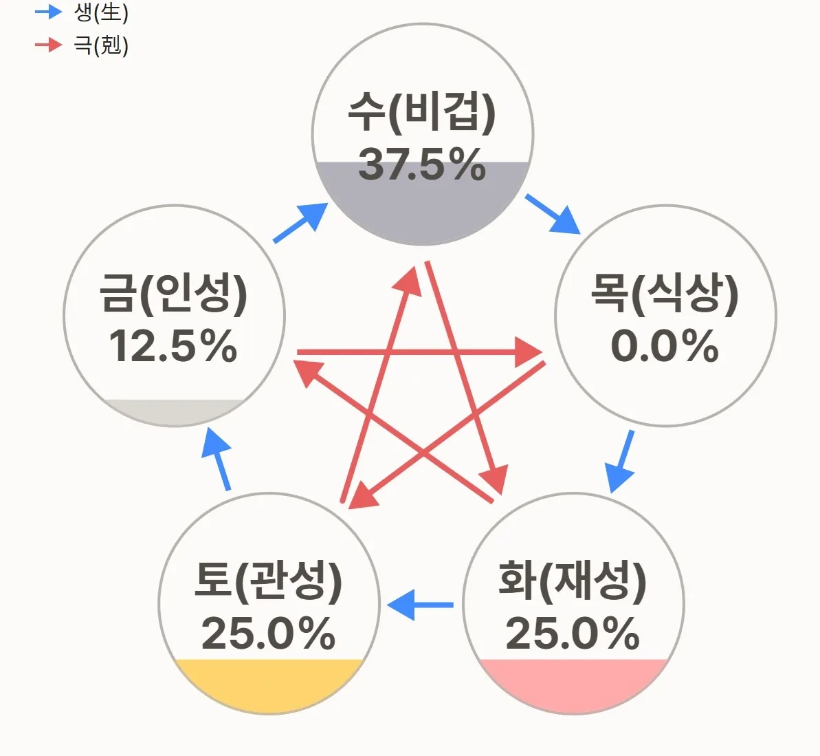 길성과 흉성, 나의 오행이 그래프로 나옵니다.
