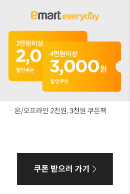 이마트는 할인행사 뿐 아니라 할인쿠폰까지 제공하고 있습니다.